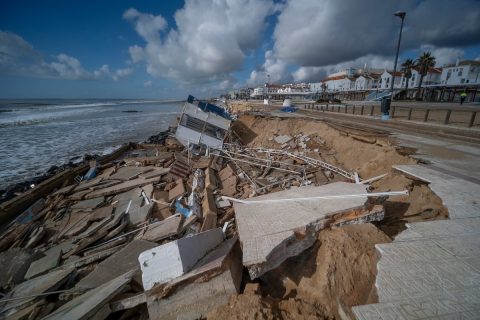 Tras el tremendo oleaje que hace dos semanas arrasó el paseo marítimo y dejó expuestos al mar varios edificios de la macrourbanización de Matalascañas (Almonte, Huelva), ha llegado la resaca